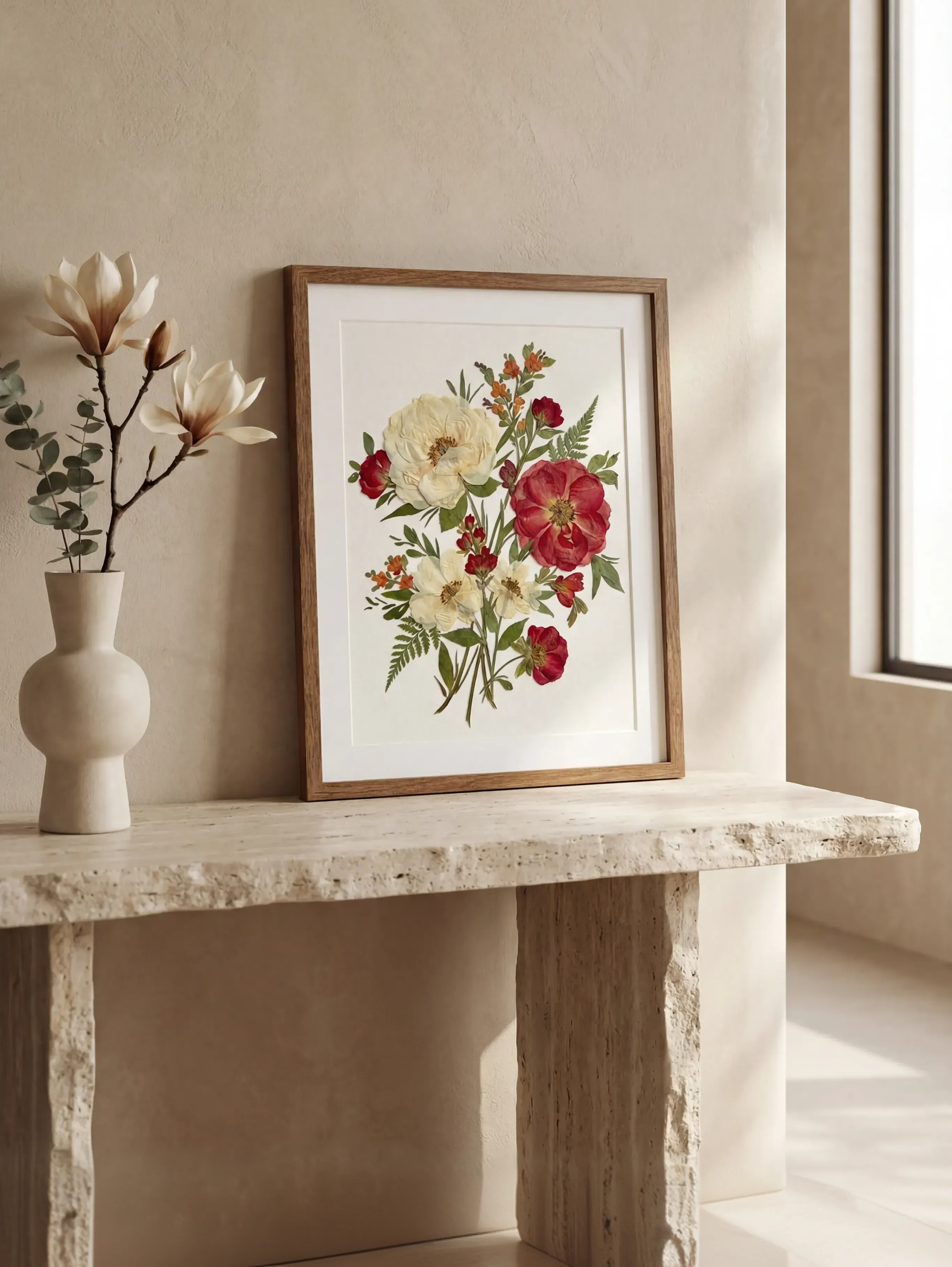 Each botanical element is carefully selected, dried, and preserved in our studio to ensure lasting beauty and color.