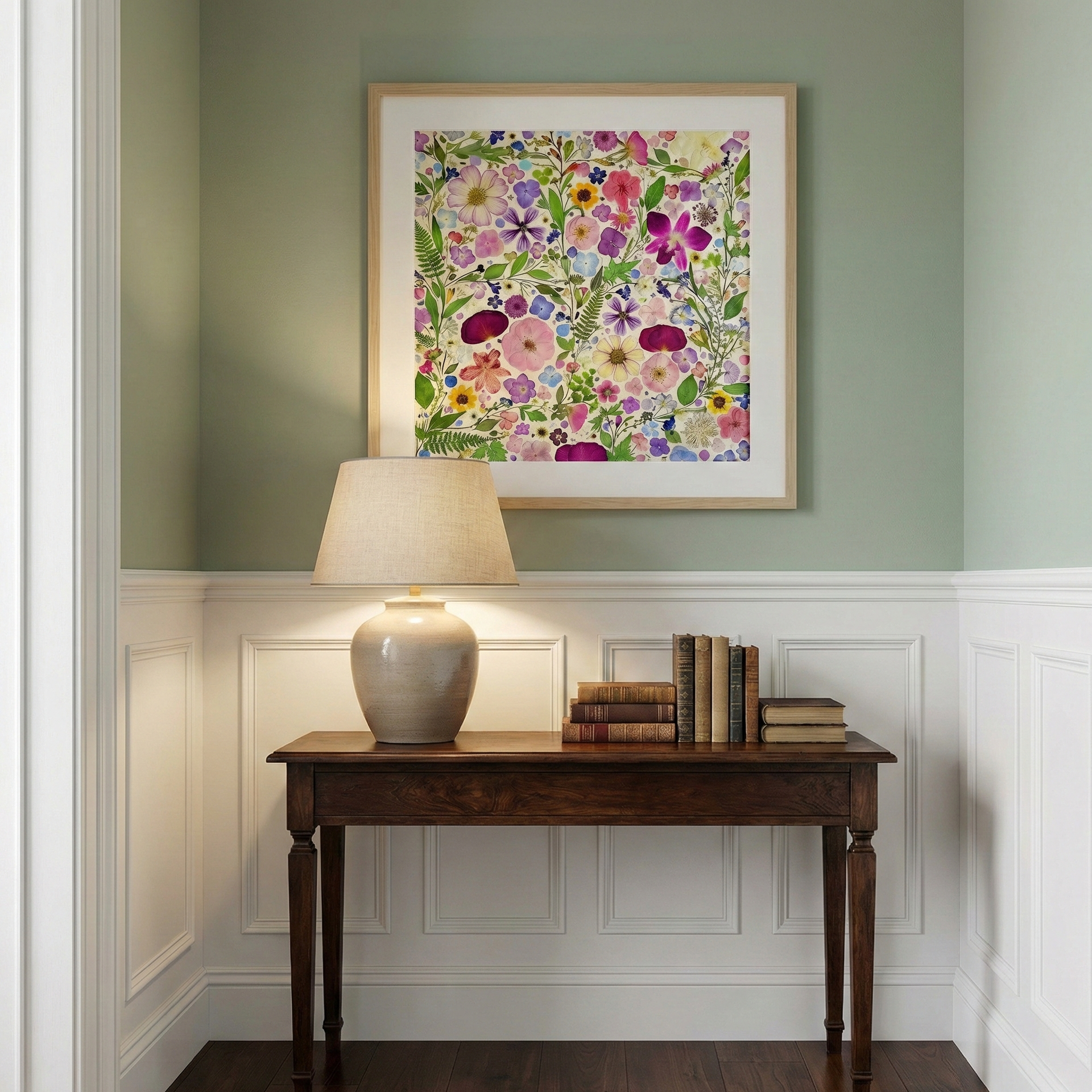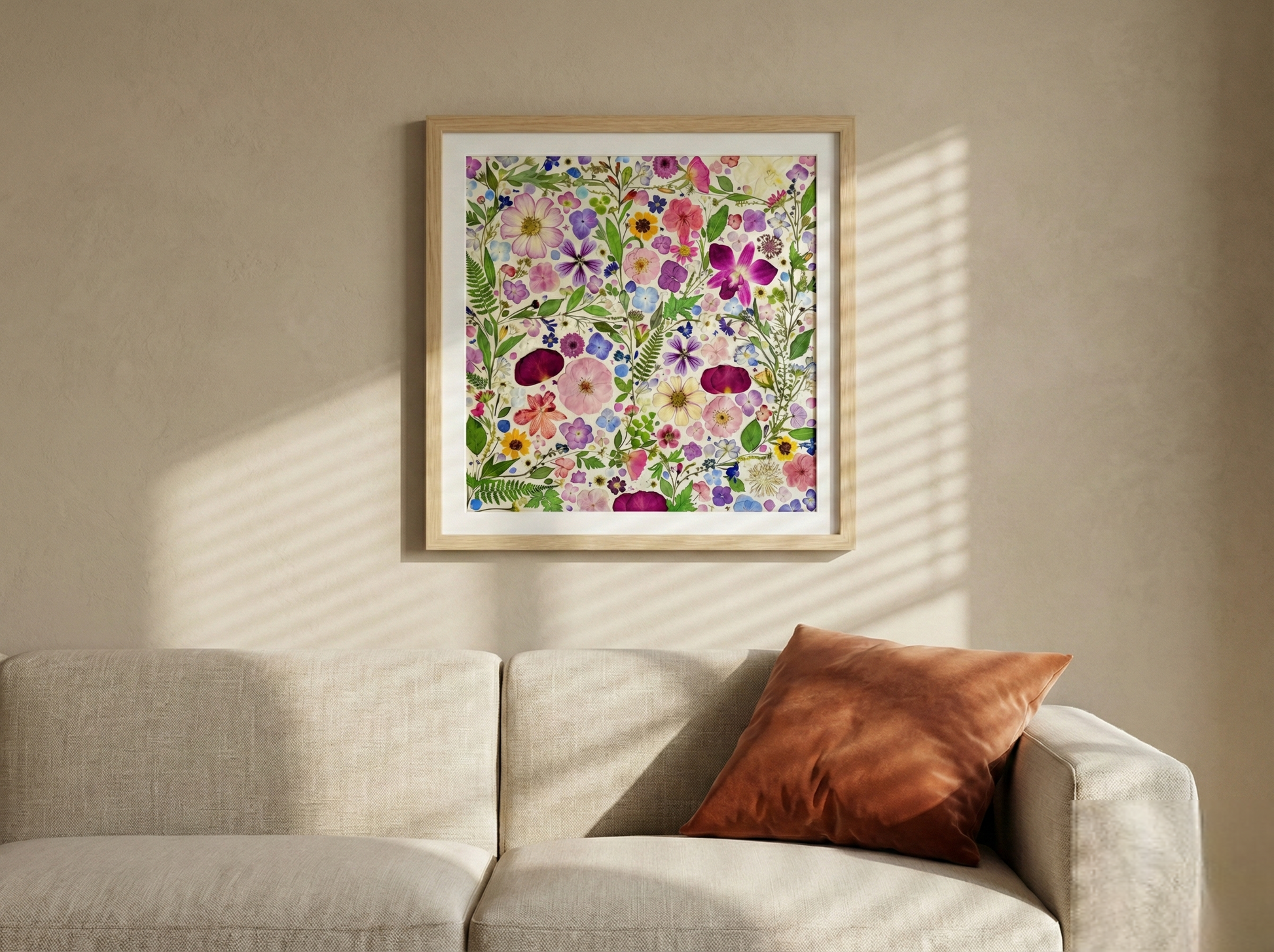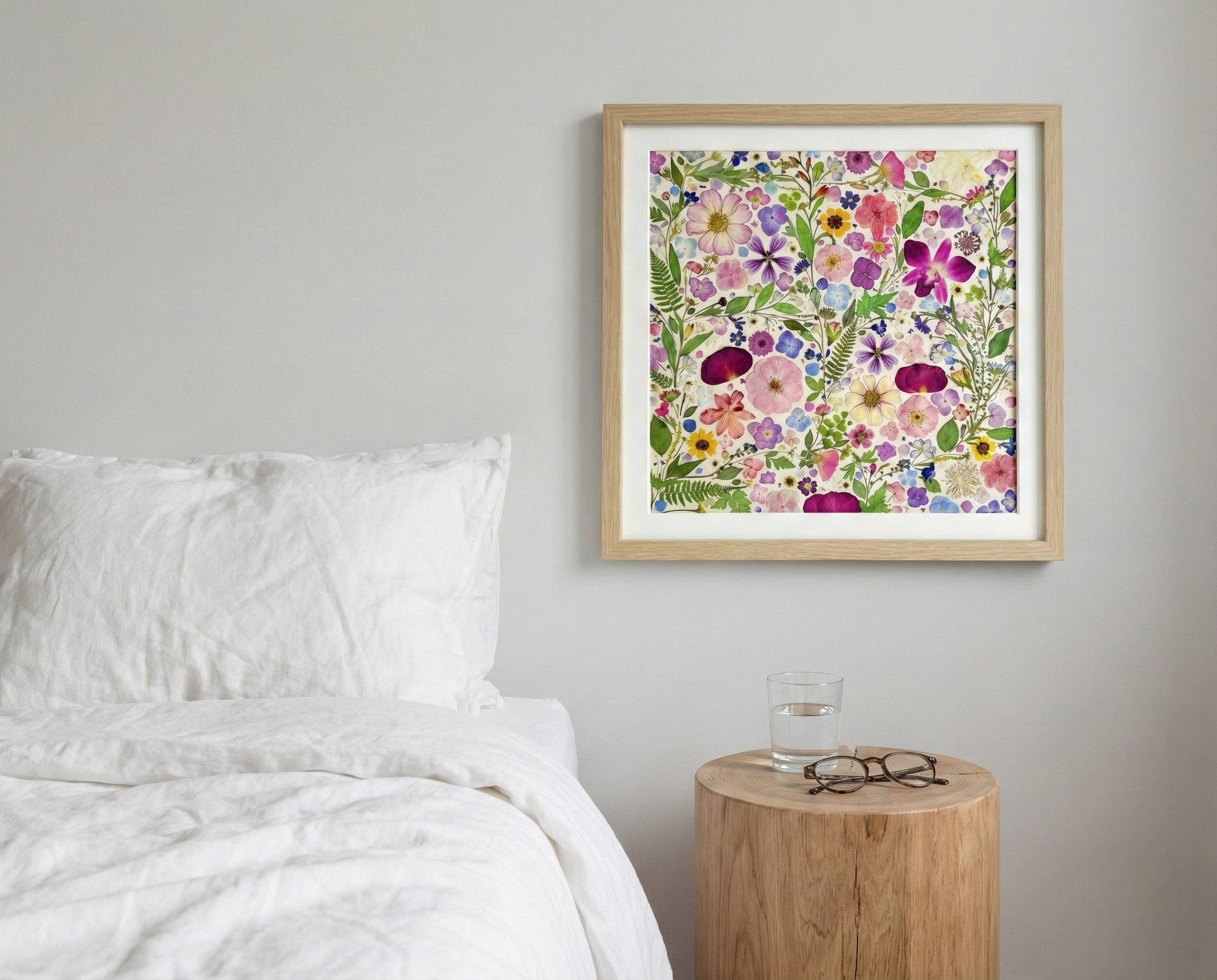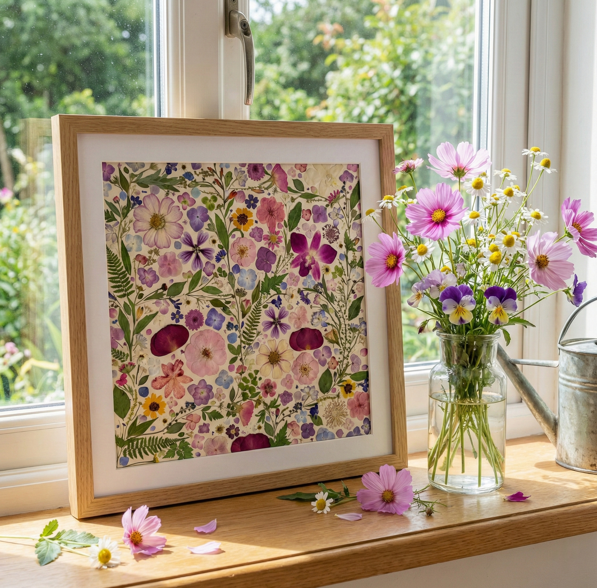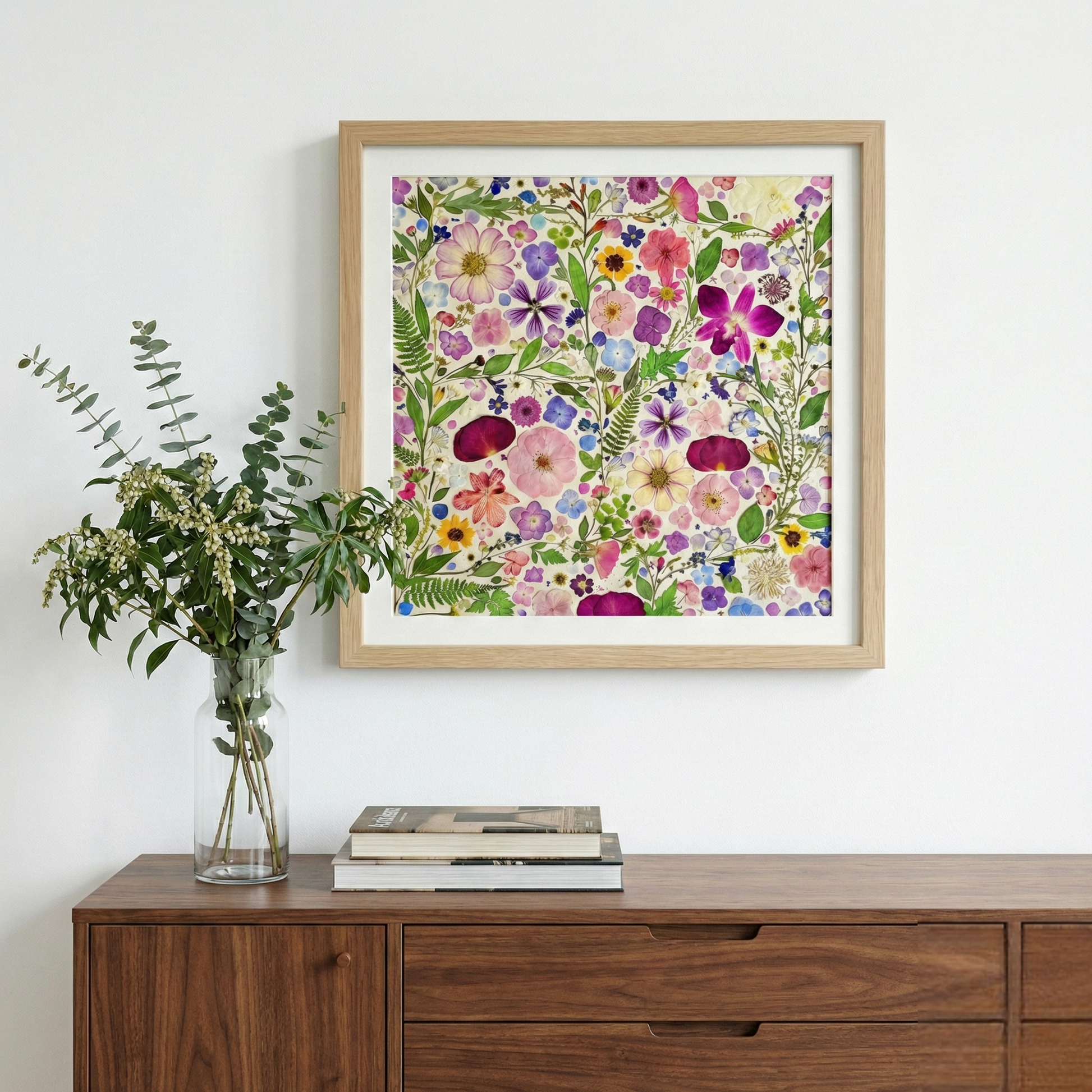 ▪ Product details: This is a large-sized pressed floral frame artwork. Our florist carefully arranges and glues dried flower petals onto background paper, creating a unique design. Each petal is sourced from the finest seasonal blooms, meticulously chosen and pressed by our skilled florists.