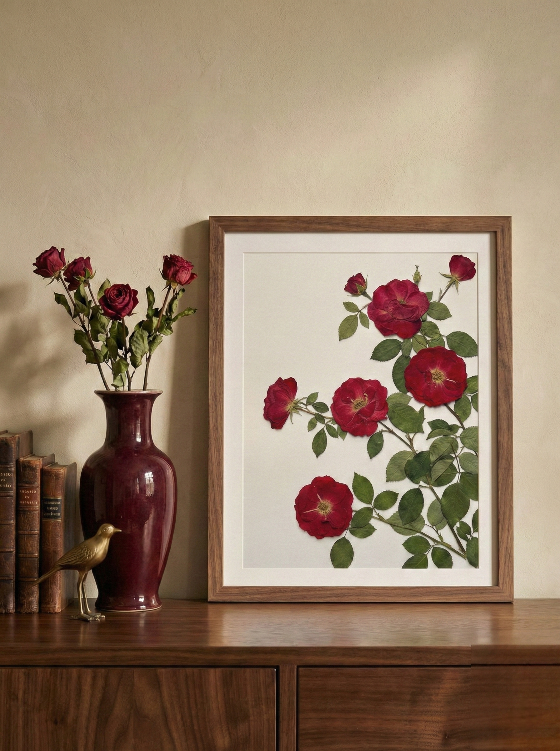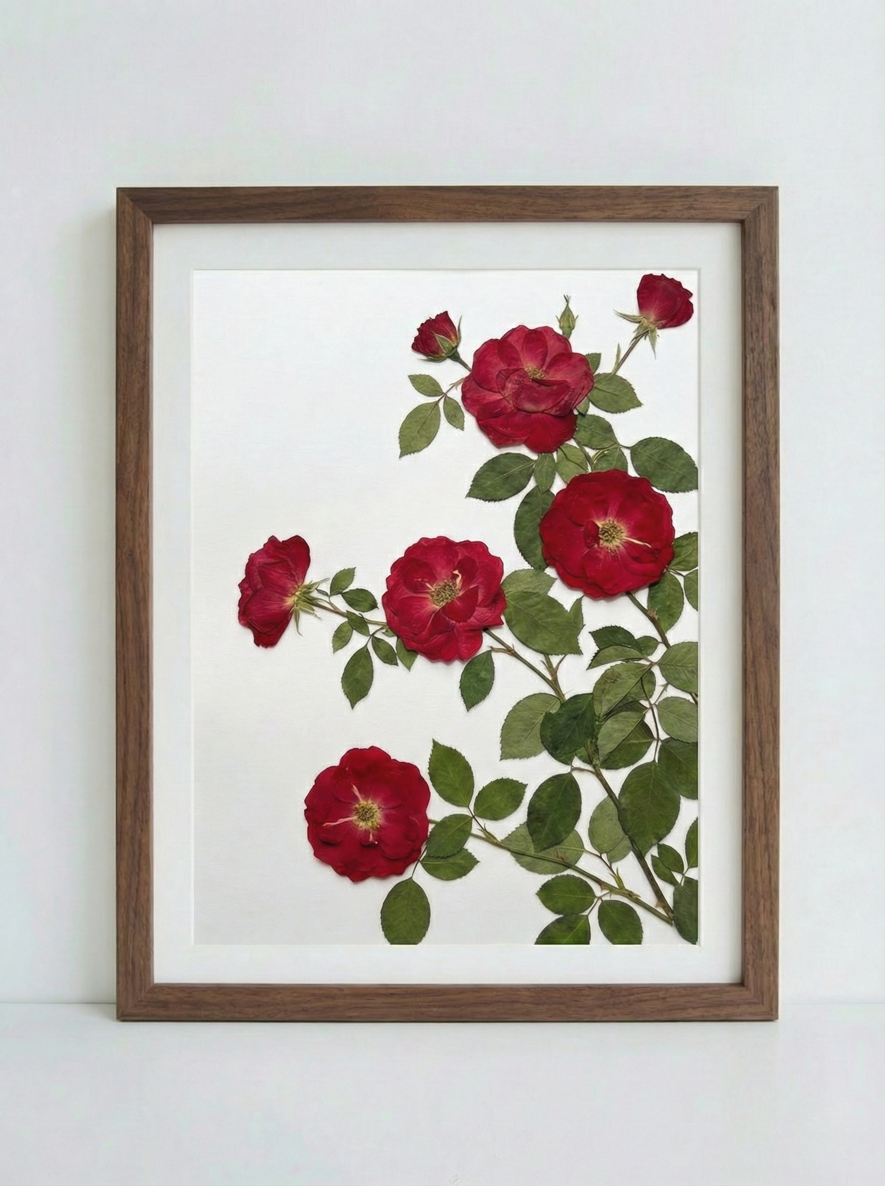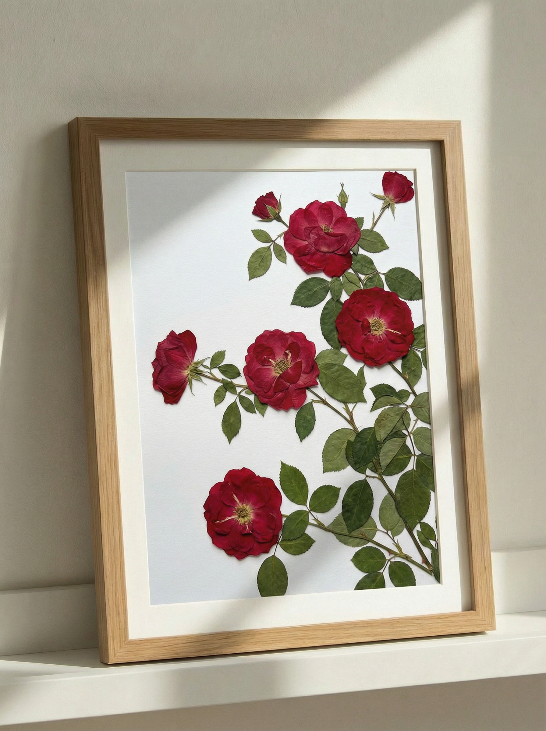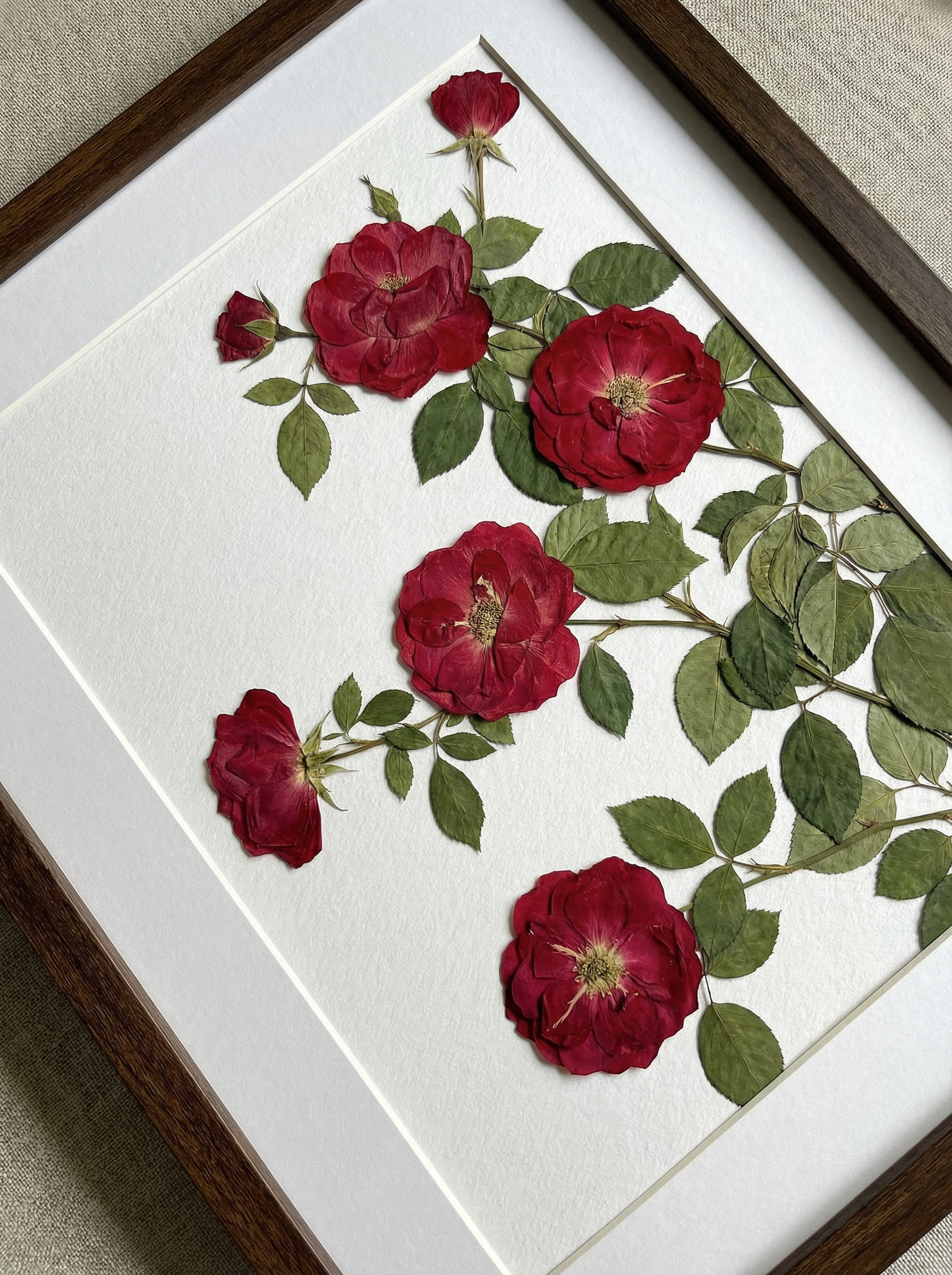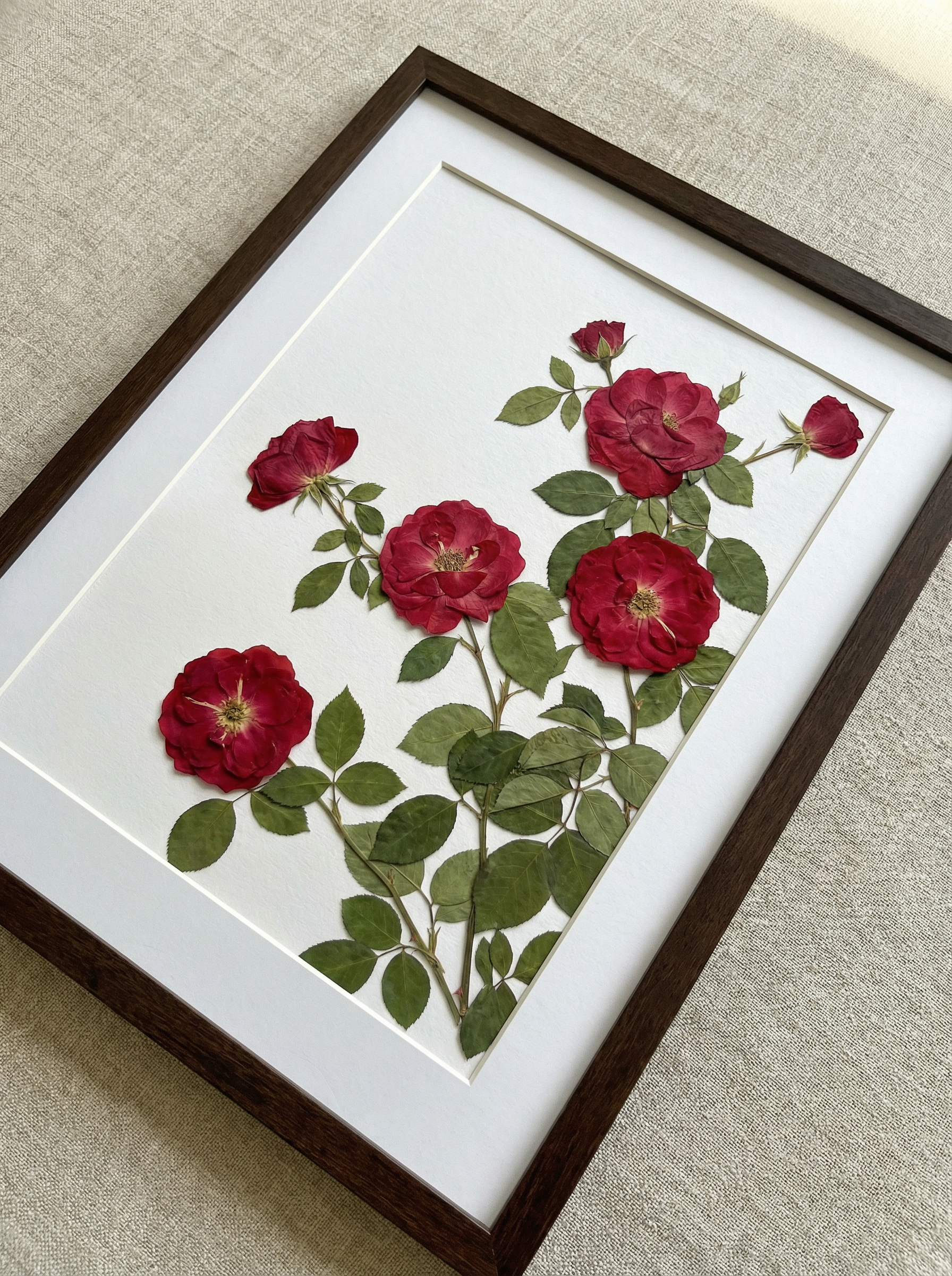Our florist carefully arranges and glues dried flower petals onto background paper, creating a unique design. Each petal is sourced from the finest seasonal blooms, meticulously chosen and pressed by our skilled florists.