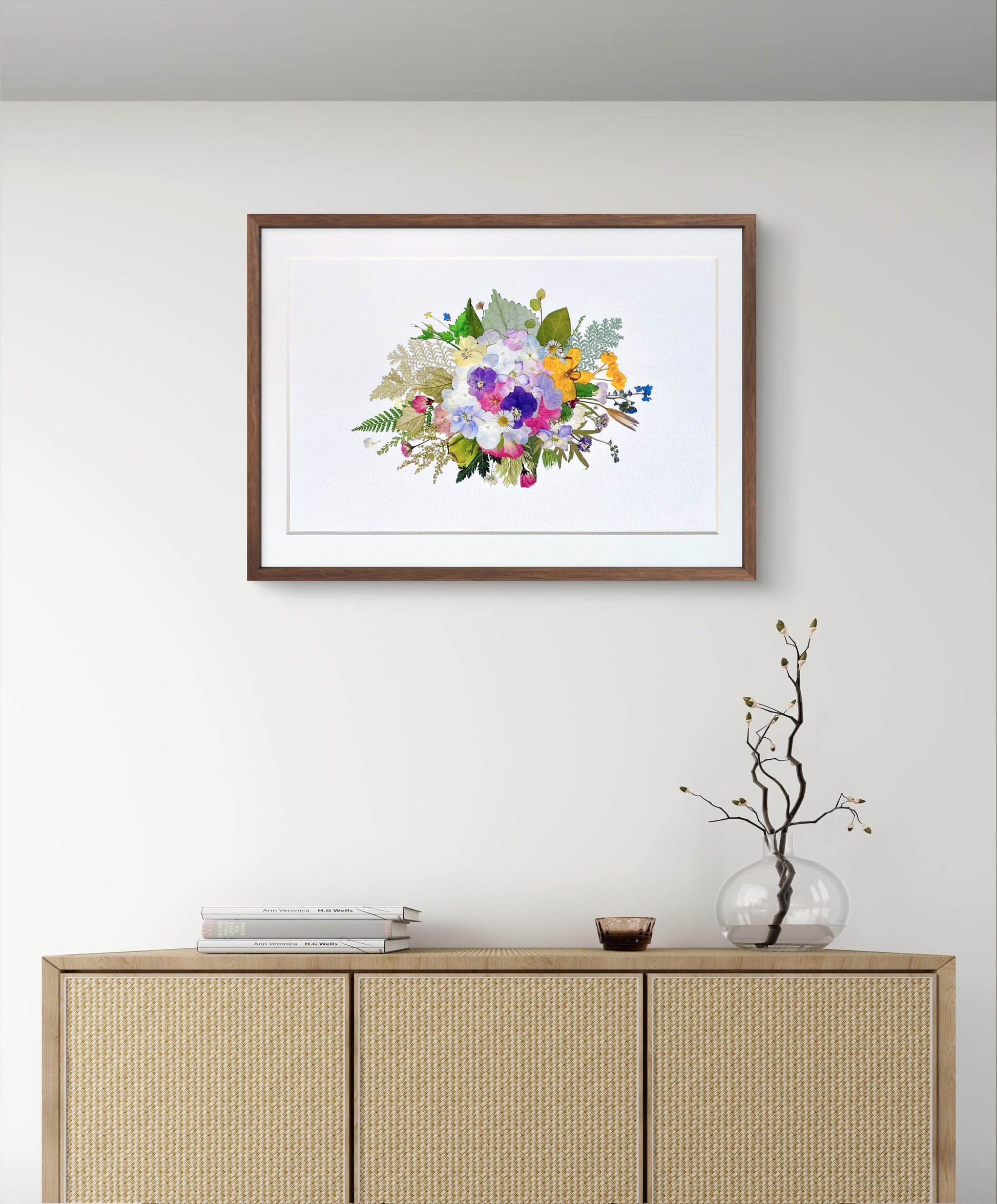 ▪ PRODUCT DETAILS: This is a large-sized pressed floral frame art, displaying the arrangement perfectly against the white background paper. Our frames are crafted from beautiful 100% hardwood, with our flower florists meticulously selecting the finest seasonal blooms. The material we use is 100% flowers and plants.