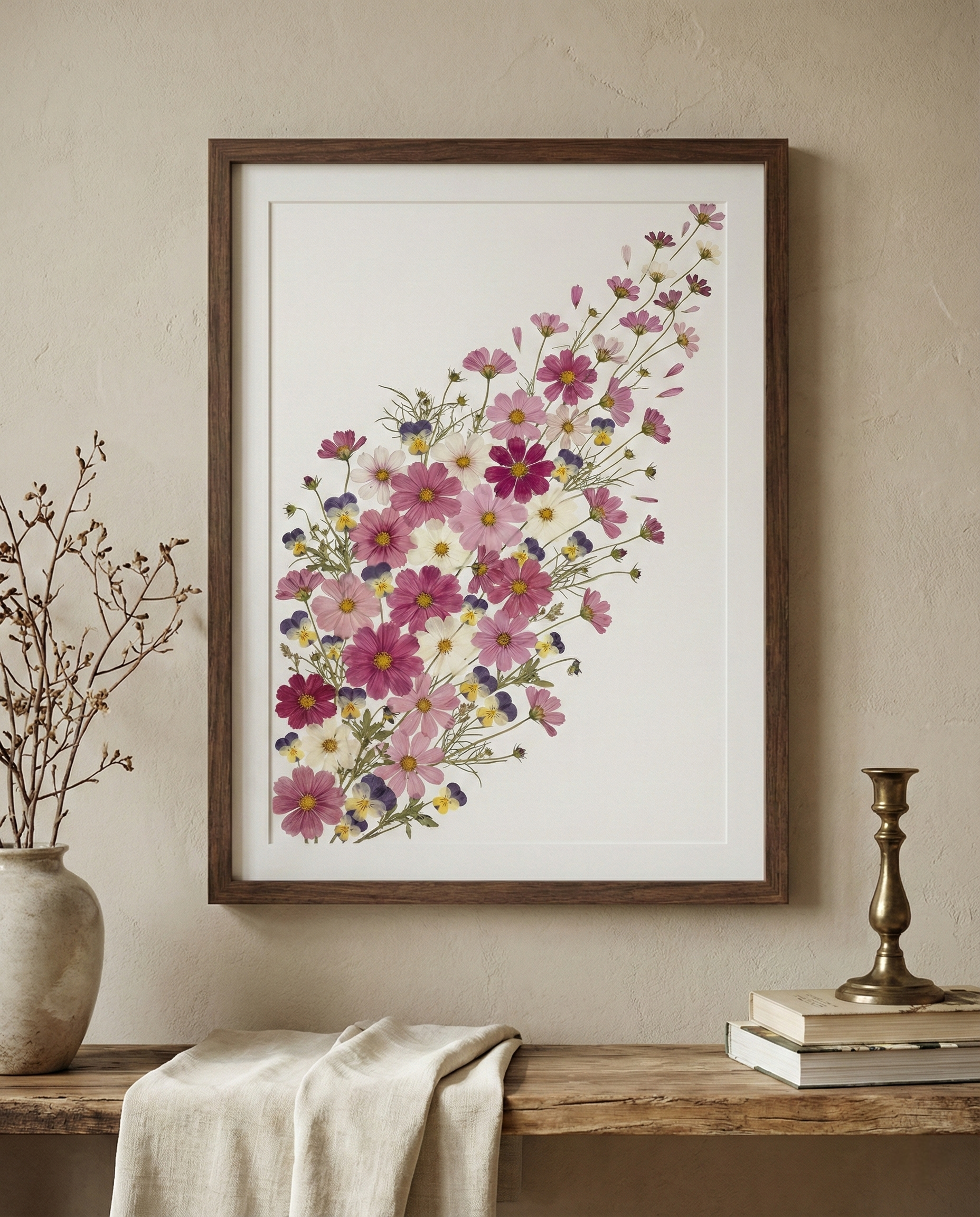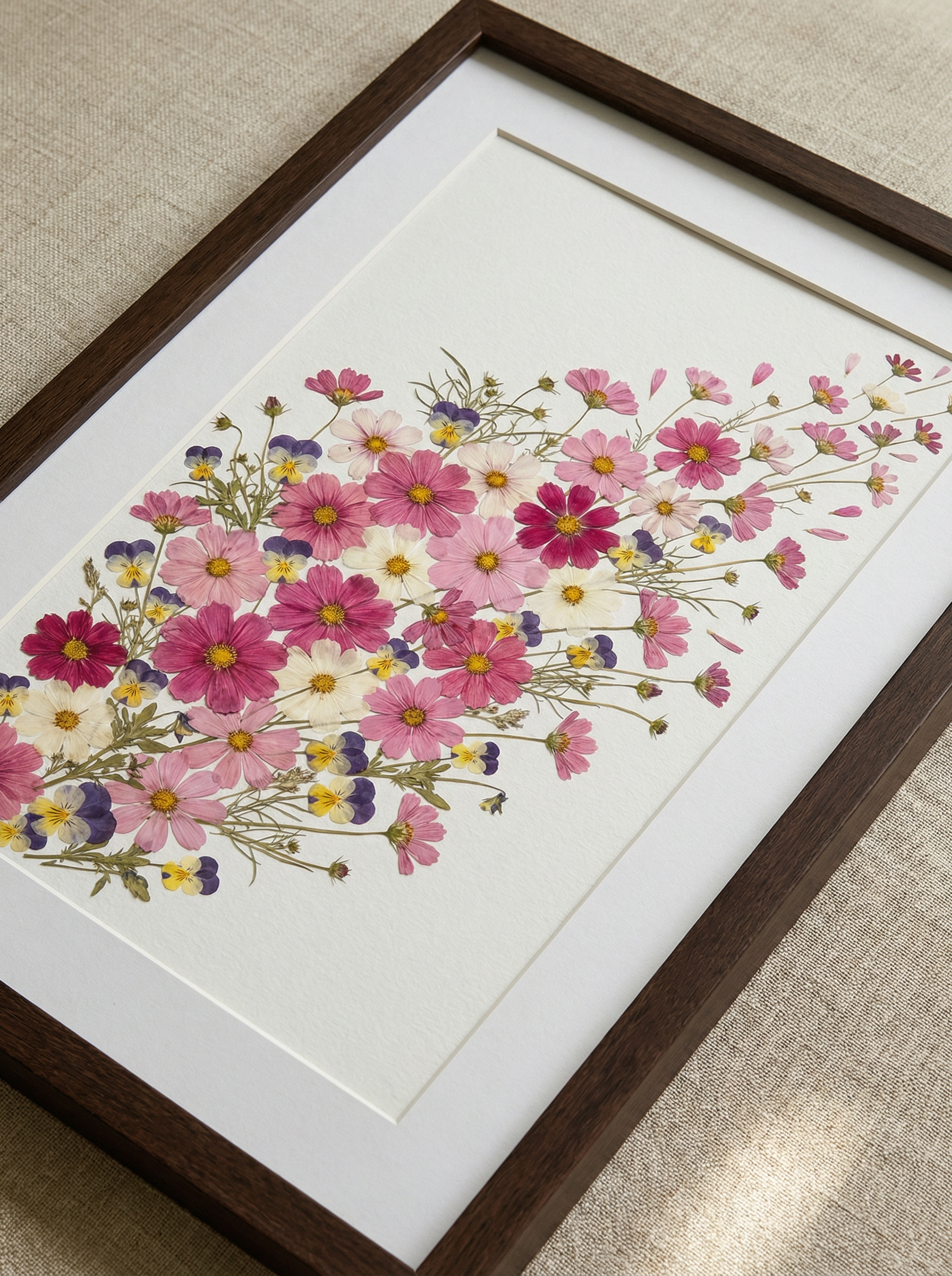 Celebrate the enduring 'Flower of Life' with this vibrant and artfully arranged piece, lovingly crafted by our International Artisan Studio. It showcases a rich tapestry of Cosmos and intricate Pansies, radiating unique charm and enriching your living space with timeless, organic allure.