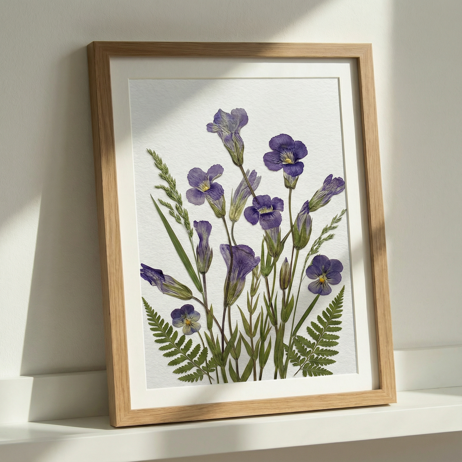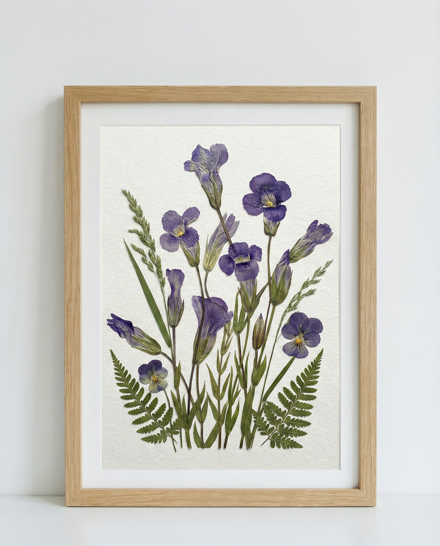 Our florist carefully arranges and glues dried flower petals onto background paper, creating a unique design. Each petal is sourced from the finest seasonal blooms, meticulously chosen and pressed by our skilled florists.