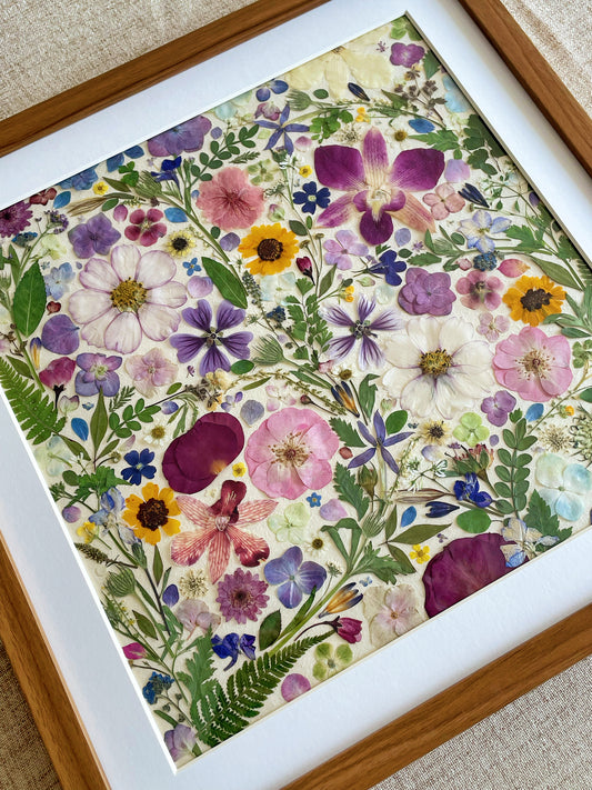 Once your order is confirmed, we begin pressing and preparing flowers and plant leaves specifically for your artwork.